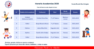 Horario Academias 2026
